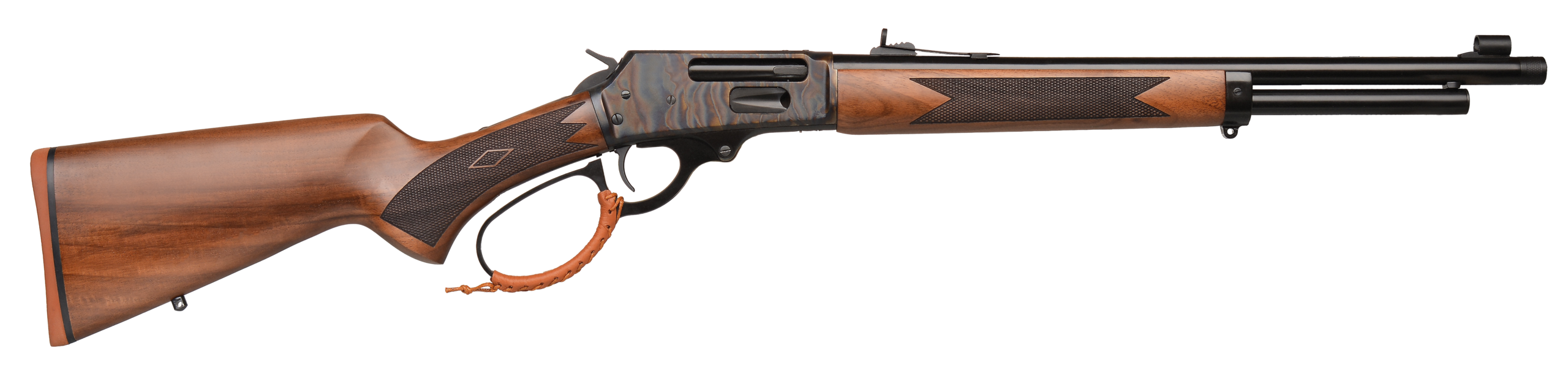 The Hugtek SCCSE embodies classic lever-action heritage with its case-hardened steel receiver, chrome-plated barrel, and finely selected Turkish walnut stock. Finished with an authentic cowhide-wrapped lever that cushions the hand during repeated cycling, it protects the shooter while preserving traditional aesthetics, and is supplied with iron sights plus a universal Picatinny rail for added versatility.